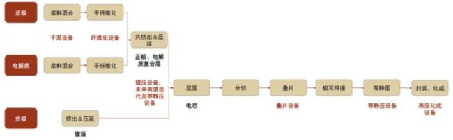 从生产工艺来看,固态电池同样分为前段(电极制造)、中段(电芯装配)、后段(电芯封装和检测),很多研报也将产业简单分为了材料端和设备端。但无论是哪种划分,每一个环节的技术突破,最终的目的都是要实现降本。