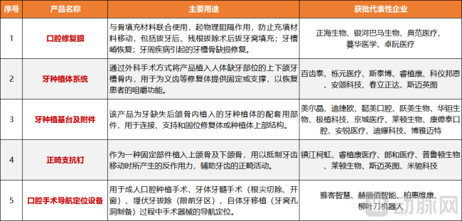 图1.2025年上半年获批三类证的代表性口腔产品及所属企业