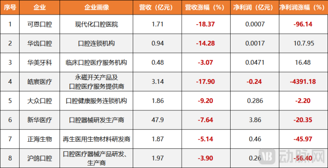 图3.2025年上半年部分处于营收下滑的口腔企业(数据来源:企业年报)