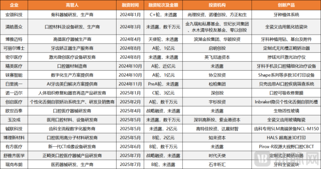 最后是从资本市场来看,从2024年开始,口腔领域的投资逐渐回暖,并将投资标的聚焦在了口腔领域的创新产品和突破性技术上,据动脉橙数据库不完全统计,过去一年半我国口腔领域的创新投资超过20亿元。