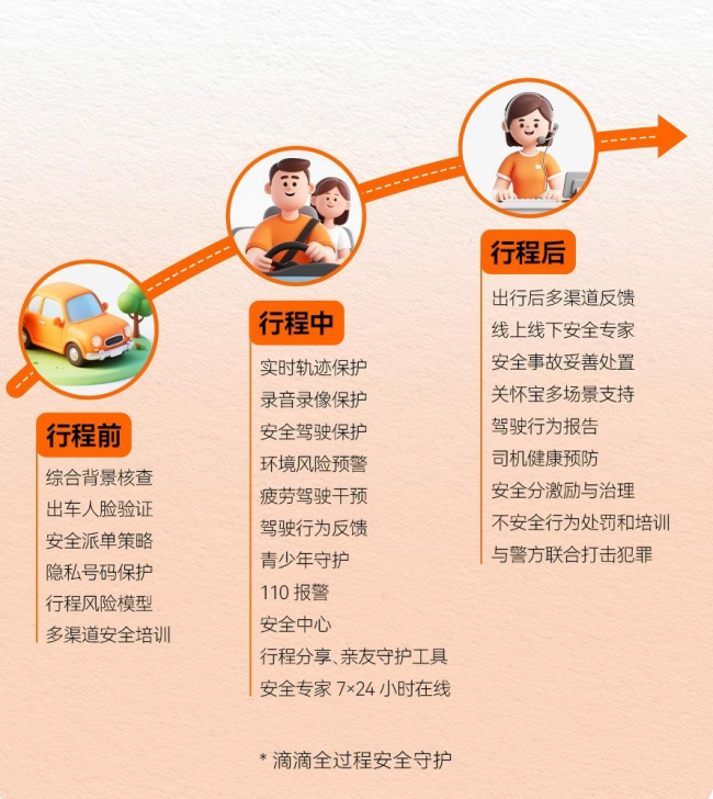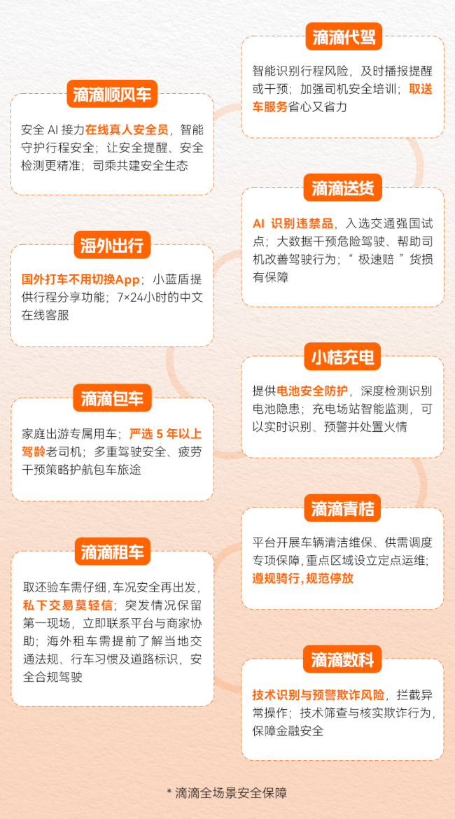 值此国庆和中秋双节同庆,滴滴在主管部门指导下,全面部署假期安保工作,完成风险排查、组织应急演练、升级技术体系,全力守护每位用户的出行安全。