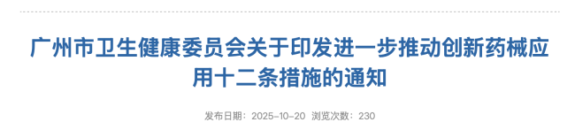 10月20日,“广州推动创新药械应用十二条”要求: