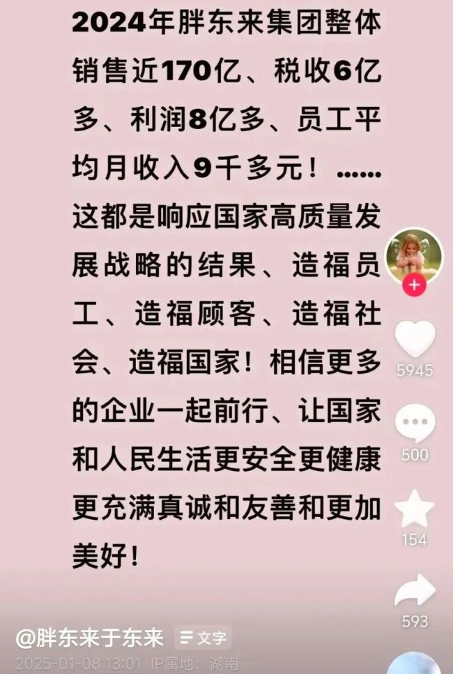 不过,于东来一直都有“视金钱为粪土”的风格。据多家媒体报道,早在2024年4月,于东来因赚太多而苦恼的视频在社交媒体上持续传播。他在视频中称,“胖东来原本去年计划挣2000万元,没想到年底挣了1.4亿元。”