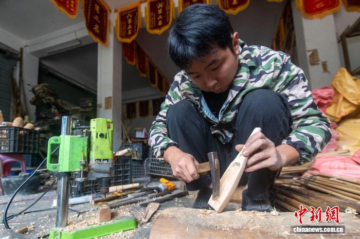 图为芦笙制作手艺人梁光进在制作芦笙管。吴德军 摄