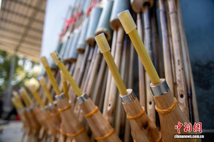 图为芦笙制作手艺人梁光林在给芦笙管簧片焊锡。吴德军 摄