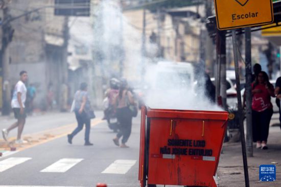 10月28日,巴西警方在里约热内卢展开针对黑帮“红色司令部”的大规模剿匪行动,警察在街头维持秩序。新华社/巴西通讯社