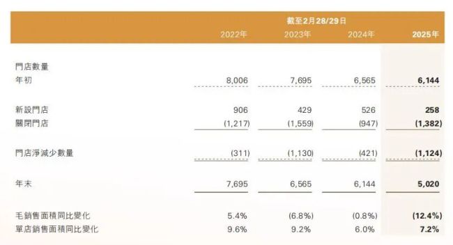 根据耐克在中国最大的零售伙伴滔搏发布的财报,截至2025年一季度,滔搏的线下门店数量已经从2022年初的8006家,减少至5020家,降幅高达37.3%。