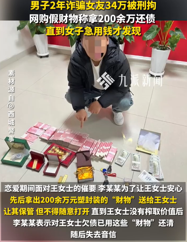 男子2年诈骗女友34万被刑拘 男子借女友34万拿假财物称还200万