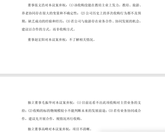 对此,昂立教育在回复上交所问询函时透露,4名董事投出弃权票的理由包括收购的标的物规模较小不能判断未来的发展前途、项目具体经营情况不够清晰等。