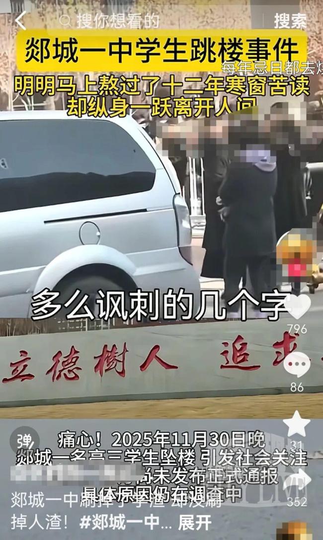 山东郯城一高中生校外坠楼身亡 事件引发网友关注!今天早上,多位网友在社交平台发布视频,称山东省临沂市郯城第一中学一名高中生坠楼身亡,引起广泛关注。