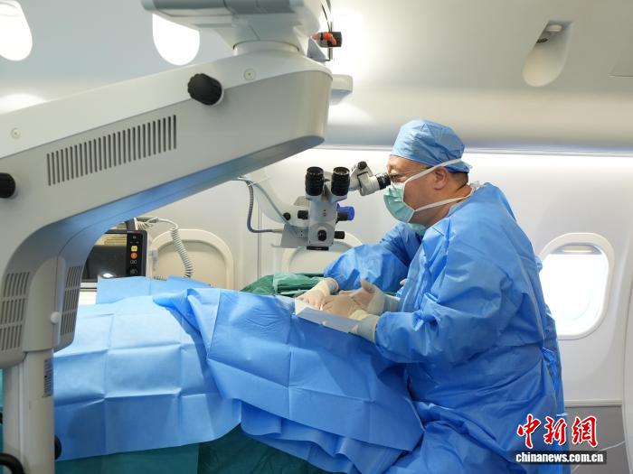 在此次首航中,中山大学中山眼科中心知名眼科专家在机上为8名患者成功实施黄斑兜带、复杂白内障复明及玻璃体腔注药等手术。