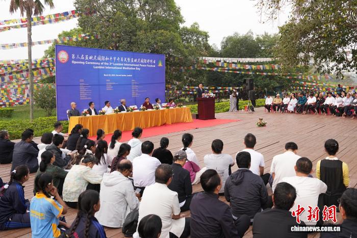 3月20日,第三届蓝毗尼国际和平节在佛祖诞生地尼泊尔蓝毗尼启幕。和平节由中国驻尼泊尔大使馆、尼泊尔奥委会、尼泊尔旅游委员会、蓝毗尼开发委员会等联合主办,包含国际禅修节、国际和平音乐会、国际和平马拉松等多项文体活动。中新社记者 崔楠 摄