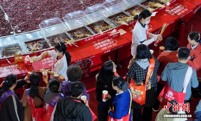 图为参观者在品尝火锅。中新社记者 安源 摄