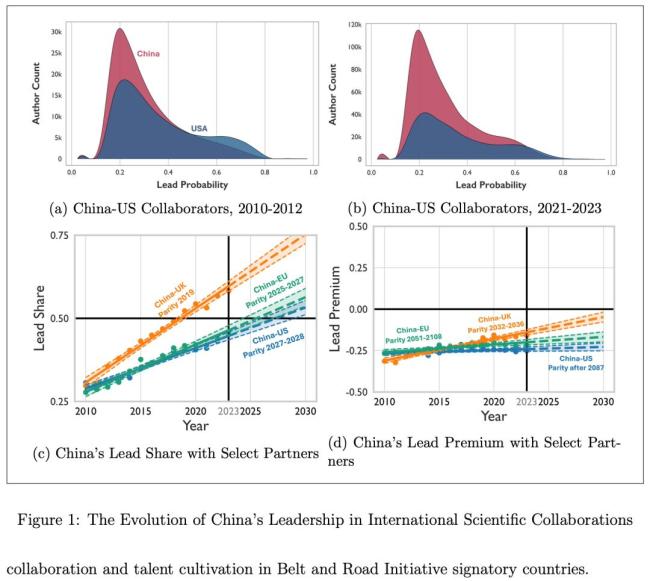 中国科研正从数量取胜转向质量与领导力的提升,逐步实现从跟跑到领跑的转变。在国际合作中,中国的领衔比例迅速上升,逐渐与美欧趋于均衡。在人工智能、先进通信、半导体与量子等关键领域,中国不仅加速发展,还在顶尖期刊和高被引成果上取得显著进步