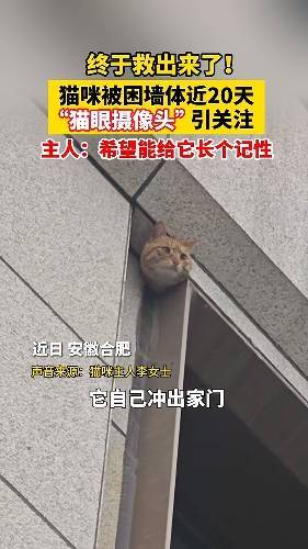 近日,合肥市包河区一小区内发生了一起小猫咪被困事件。这只小猫在建筑墙壁内被困了近20天,家人尝试了多种方法寻找和救援。最终,在消防员的建议下,通过饥饿激励和食物引诱,猫咪在天黑时成功逃脱。整个救援过程引起了众多网友的关注和支持