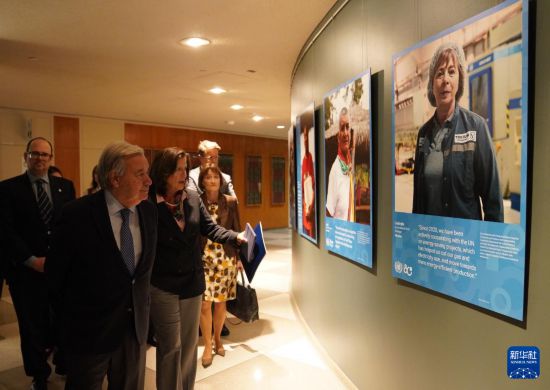 10月20日,在位于纽约的联合国总部,联合国秘书长古特雷斯(前)参观“共栖生命,共享未来”庆祝联合国成立80周年全球图片展。新华社记者张凤国摄 新华社联合国10月20日电(记者潘云召)“共栖生命
