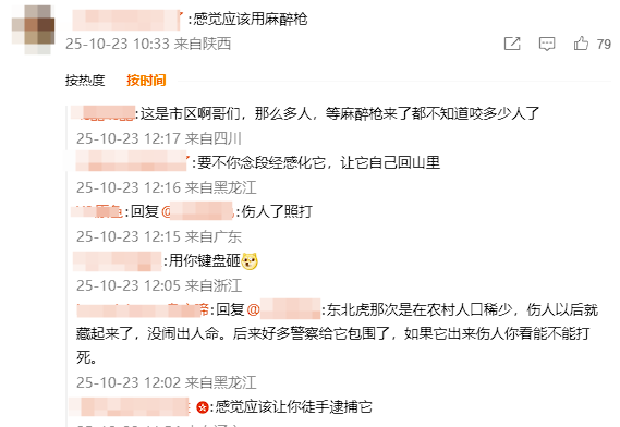 10月23日消息,昨晚,黑龙江省双鸭山市宝清县发生一起野生黑熊闯入城区事件。据当地网友介绍,当晚21:23左右,一头体重约400斤的成年黑熊从和平村方向进入城区,先后在金茂华府小区、北兴宾馆周边及友谊街等区域活动,持续近1小时。目击者称,黑...