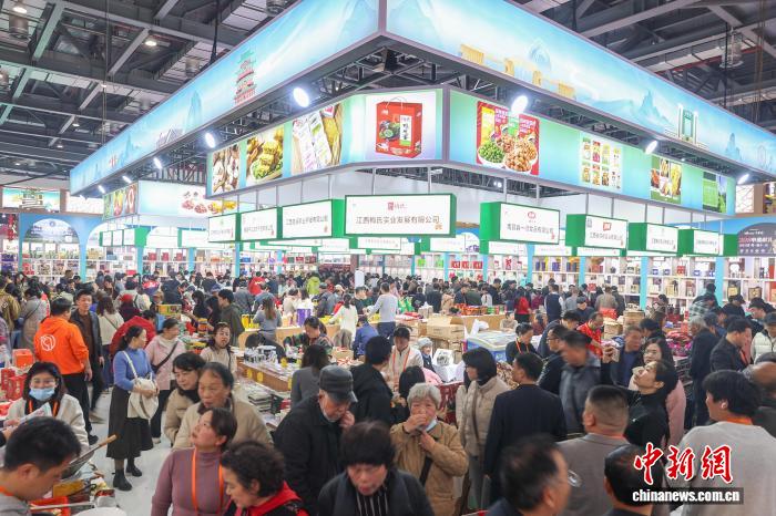 图为第七届江西农博会现场,春节临近,民众在南昌馆内采购各类年货农产品。中新社记者 刘力鑫 摄