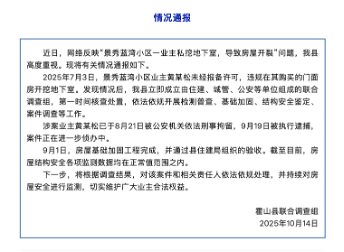今年8月,安徽霍山一业主私挖地下室导致整栋楼开裂,涉事者已被逮捕,案件正在进一步侦办中。但部分业主反映房屋修缮、赔偿安置等问题尚未解决。10月14日下午2点,霍山县联合调查组发布情况通报